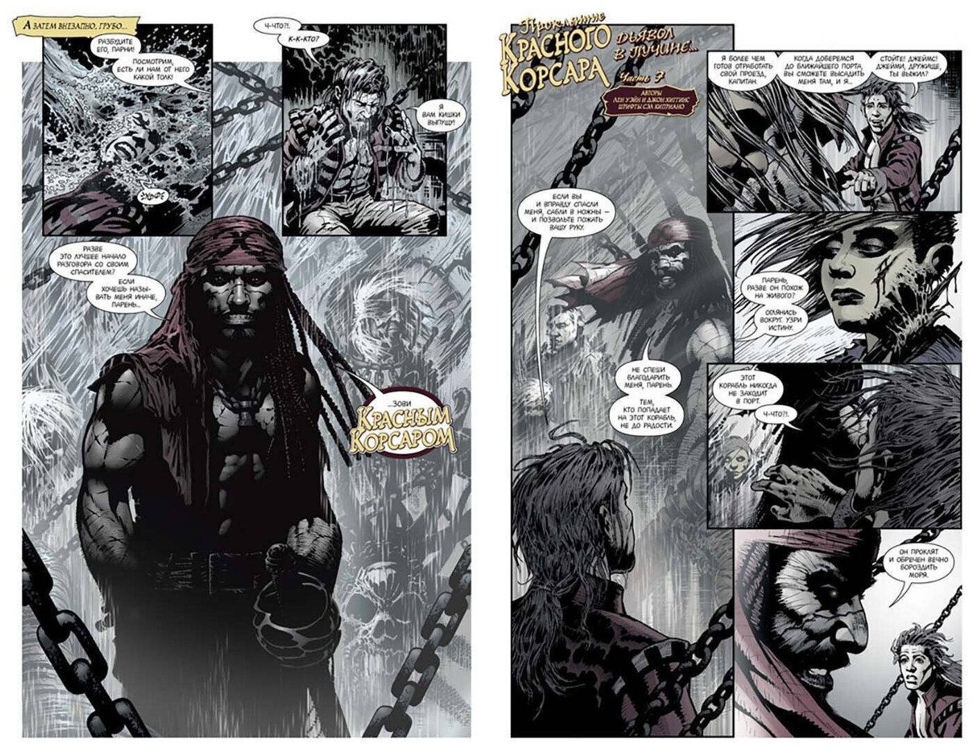 Лин Уэйн и Джон Хиггинс создали "Проклятие Красного Корсара", захватывающую пиратскую историю, которая рассказывает историю безумия и эпического путешествия по миру запредельных ужасов моряка Гордона Маклахлана. Эта страшная сказка отсылает к "Истории Черной Шхуны" из "Хранителей", и Джон Хиггинс воплощает безумные видения главного героя с потрясающей реалистичностью и головокружительной глубиной.