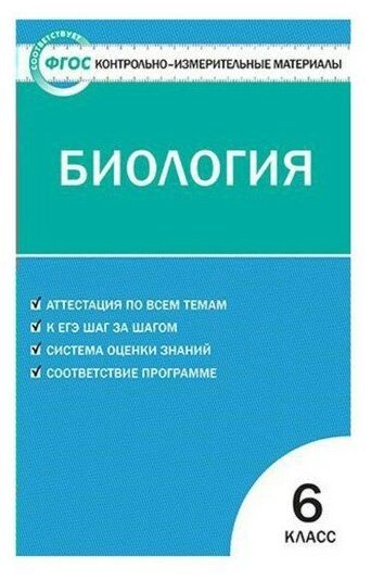 В пособии представлены контрольно-измерительные материалы (КИМы) по биологии для 6 класса. Издание составлено в соответствии с требованиями ФГОС. Структура КИМов аналогична структуре заданий ЕГЭ, что позволит постепенно подготовить учащихся к работе с подобным материалом. В конце издания предложены ответы к тестам.