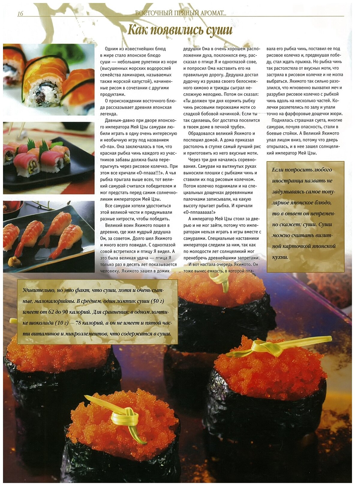 .Данное издание содержит большое количество рецептов основных японских блюд, подробное описание процесса приготовления суши, а также прекрасные иллюстрации, которые облегчат ваш труд.