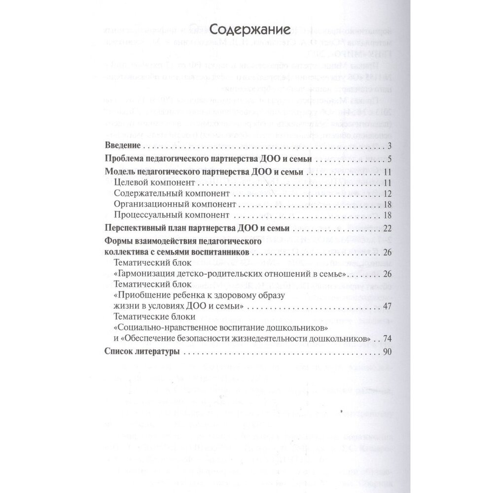 Пособие «Партнерство дошкольной организации и семьи» посвящено проблеме взаимодействия ДОО и семьи по вопросам обеспечения эмоционального, физического и социального благополучия ребенка. В книге представлены конспекты и сценарии познавательных, досуговых и информационноаналитических форм взаимодействия педагогов с родителями.