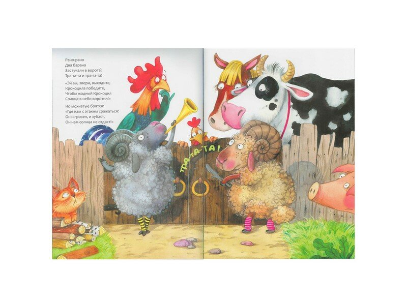 Эта ещё одна чудесная книга этого издания, как мы её любим! Страницы плотные, ламинированные, большой формат и красочные иллюстрации! Читаем часто и с удовольствием с двухлетним сыном. Кстати, да, задумка про не красочные страницы в том месте, где крокодил солнце проглотил - отличная! Ребенку наглядно всё понятно, как мне кажется ))) Эта книга не стала исключением в том, что до идеальности издания, лично мне, не хватило совпадений иллюстраций с текстом, так что бы я могла постоянно пальчиком показывать малышу. Но это мелочи и мои придирки! Рисунки конечно очень добрые, милые и тёплые. Ребенку нравиться, а это главное! Однозначно рекомендую!