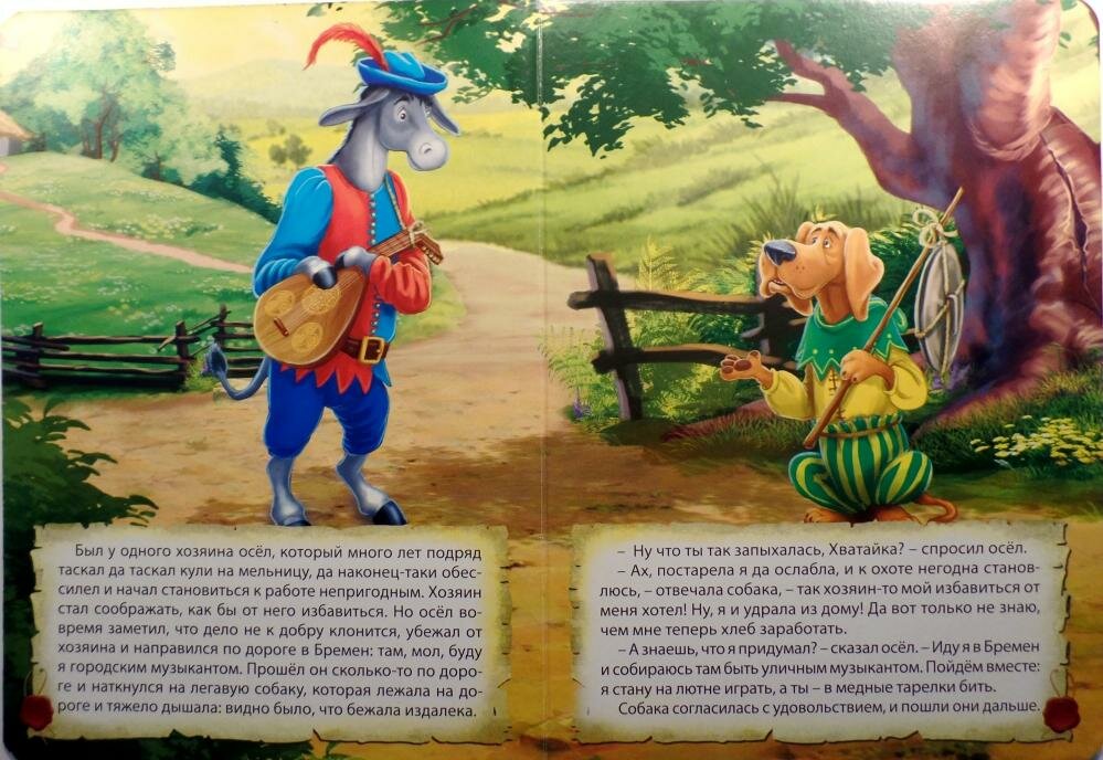 Хорошая детская книжка из плотного картона. Внуку нравятся бременские музыканты, пришлось купить книгу. Теперь читаем и наслаждаемся. Текст в книжке хорошо расположен, шрифт достаточно крупный. Сказка передана хорошо. Дополняется все это прекрасными иллюстрациями, яркими и красочными