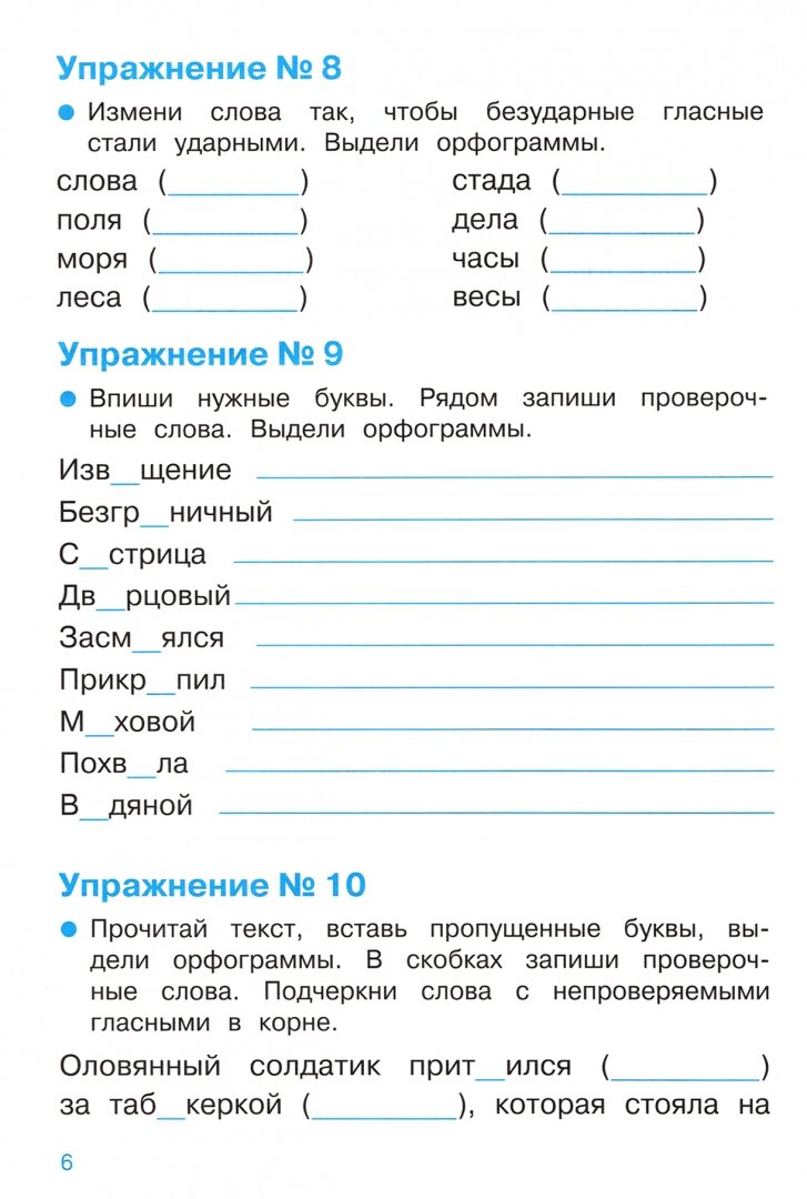 Этот тренажёр предназначен для формирования и закрепления навыков правописания слов с проверяемыми и непроверяемыми безударными гласными в корне. Выполняя упражнения, ребёнок разовьёт способность легко находить в словах орфограммы и подбирать соответствующие правила. Для тренировки навыков нахождения орфограмм в пособии представлены разнообразные упражнения: списывание слов с расстановкой пропущенных букв, нахождение в тексте слов с нужной орфограммой, расстановка пропущенных букв с помощью подбора однокоренных слов, исправление в словах ошибок.