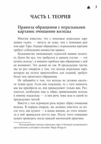 Креативные гадания на игральных картах. Книга 6. Часть первая, теоретическая: правила обращения с игральными картами: очищение колоды; свечи в ритуалах с игральными картами: сила растений; подготовительные для гадания на игральных картах ритуалы: сила шара для ясновидения; предсказательная сила растений: виды, особенности применения при гадании и др. Вторая часть - практика гадания на игральных картах: техники раскладов общих и специальных (поиск пути, ответ, решение, выбор, любовные отношения, деньги и т. п.), пасьянсы, схемы гаданий – простых и сложных, с разным количеством карт.