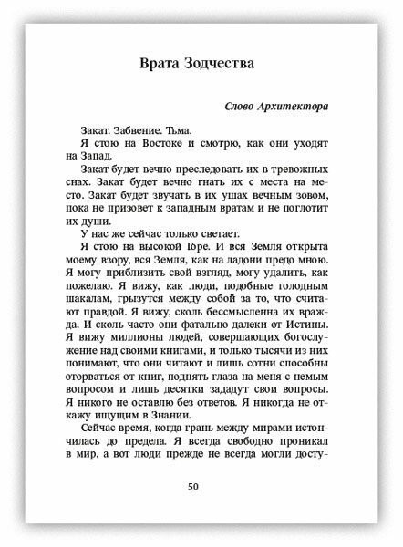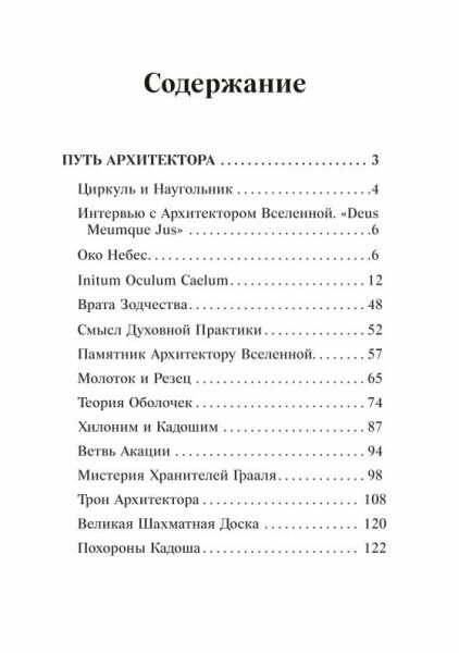 .Сборник включает в себя две книги: «Путь Архитектора» и «Врата Совершенства». На страницах «Пути...» вы прочтете диалог Великого Архитектора и Мастера, рассказывающий о сути Тайного Знания, а во «Вратах Совершенства» вы узнаете о том, как постигнуть это Знание в девять шагов.