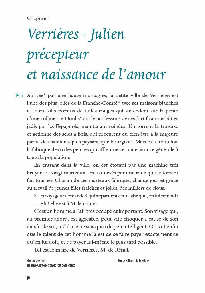 .D'abord precepteur chez le maire de Verrieres, il devient l'amant de sa femme. En suivra un scandale qui l'oblige a entrer au seminaire de Besancon. La, il est pris a coeur par le directeur qui, reconnaissant son intelligence superieure, l'aide a franchir les echelons que lui dicte son ambition. Ce sera l'occasion de connaitre la societe parisienne de la Restauration ou, faute d'ideaux, l'ennui domine.