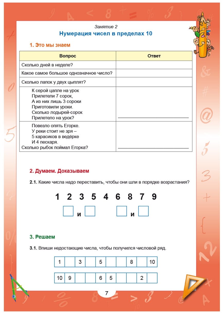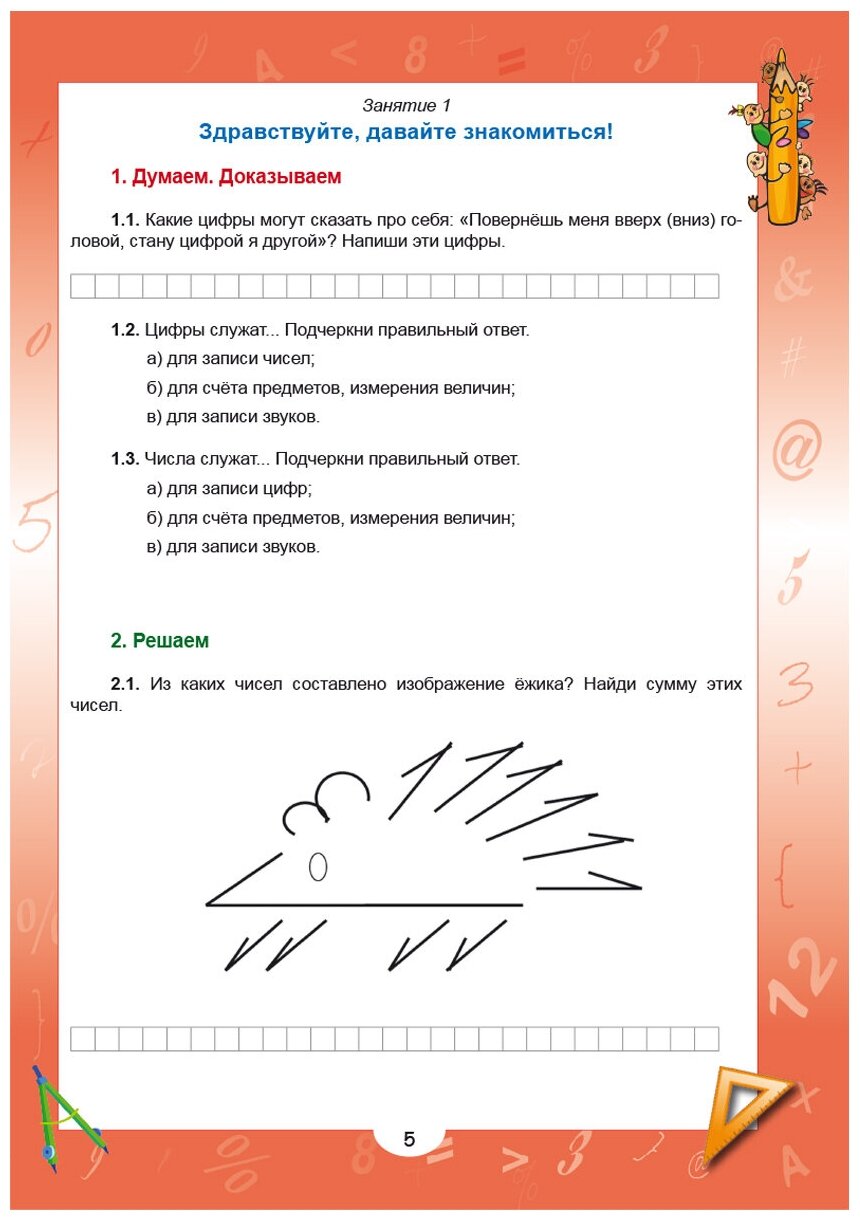 Задания в тетради разработаны с целью формирования у обучающихся 1 класса позитивного отношения к математике, развития активного самостоятельного творческого мышления, умения логически мыслить и анализировать.