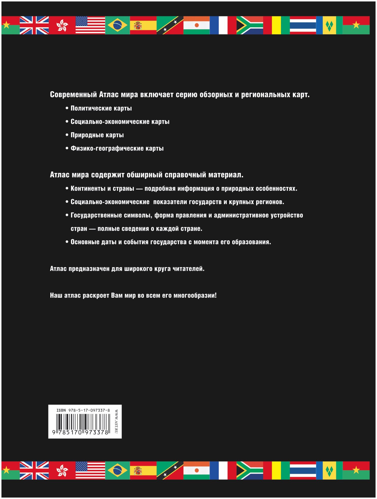 Современный Атлас мира включает серию обзорных и региональных карт. - Политические карты - Социально-экономические карты - Природные карты - Физико-географические карты Атлас мира содержит обширный справочный материал. - Континенты и страны - подробная информация о природных особенностях. - Социально-экономические показатели государств и крупных регионов. - Государственные символы, форма правления и административное устройство стран - полные сведения о каждой стране. - Основные даты и события государства с момента его образования. Атлас предназначен для широкого круга читателей. 12-е издание, исправленное и дополненное.
