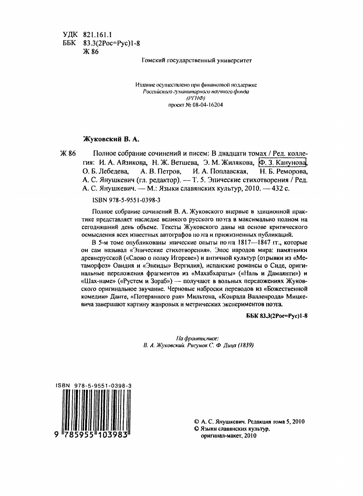 | Серия | Полное собрание сочинений и писем В. А. Жуковского |