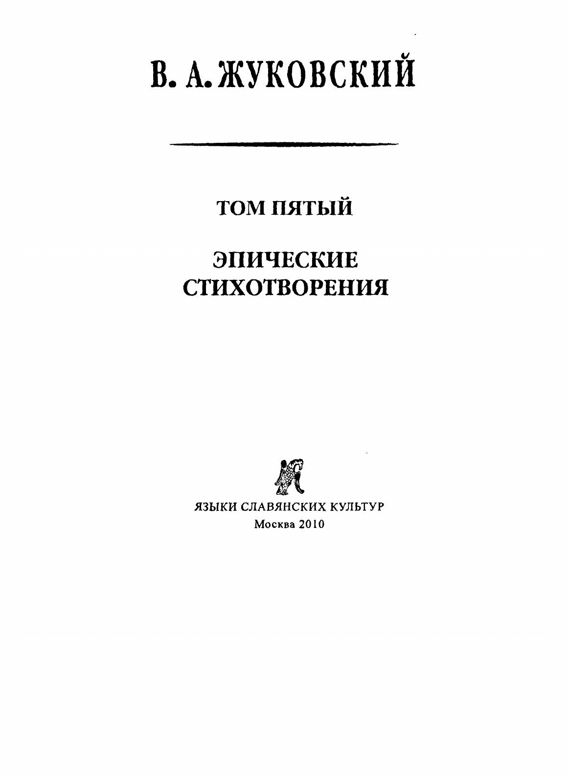Полное собрание сочинений и писем. Том 5: Эпические стихотворения (Василий Жуковский); Языки Славянской Культуры, 2010