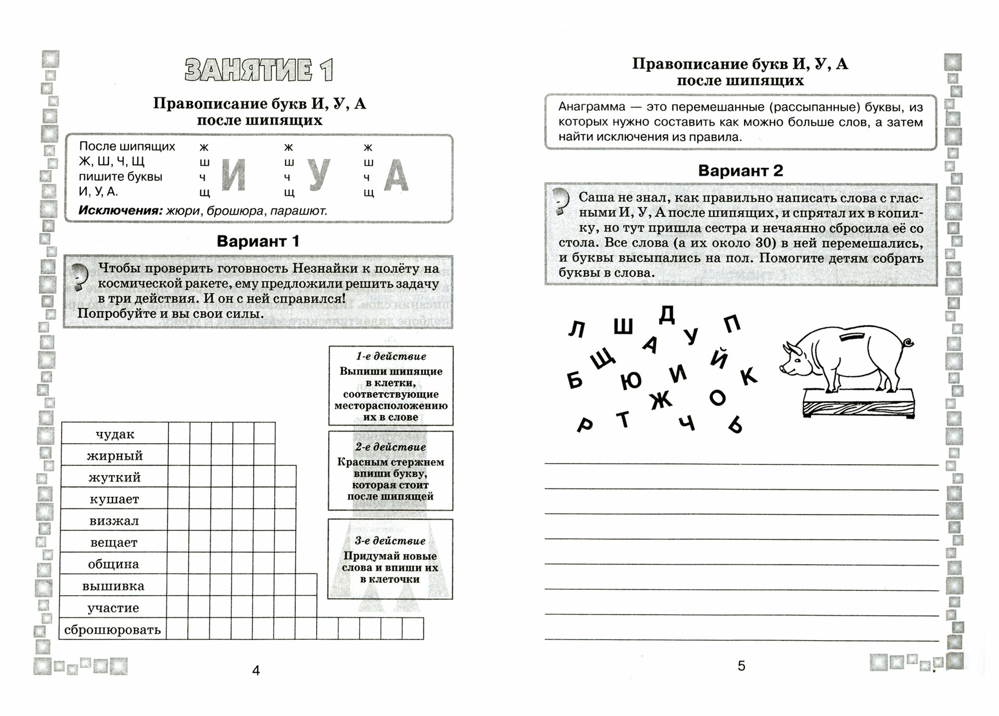 В начале каждого занятия даётся теоретический материал. Задания приведены в разной форме: ребусы, кроссворды, вставь или напиши буквы.Ответы приведены. Тренажёр может успешно применяться как во время учебного процесса, так и дома для закрепления. Бумага белого цвета. Книга на вид и размер как обычная тетрадь. Прилагаю несколько страниц для ознакомления.