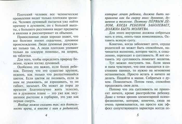 Книга подкупает ещё и тем, что информация очень содержательна, ничего лишнего. Очень уместные примеры из жизни, объяснение духовного значения болезни детей, ответственности родителей за эти болезни. Очень сильный пример о "неполноценной" девочке из детского дома, которая, начав вести духовную жизнь,исповедоваться, причащаться, искренне молиться, со временем "...научилась читать и писать, прошли все признаки дебильности, на лице изобразилась печать духовности". Приводя этот пример отец Алексий говорит, что "если после этого соберутся все умники мира и представят мне самые точные доказательства того, что Бога нет, я с печалью на них погляжу."