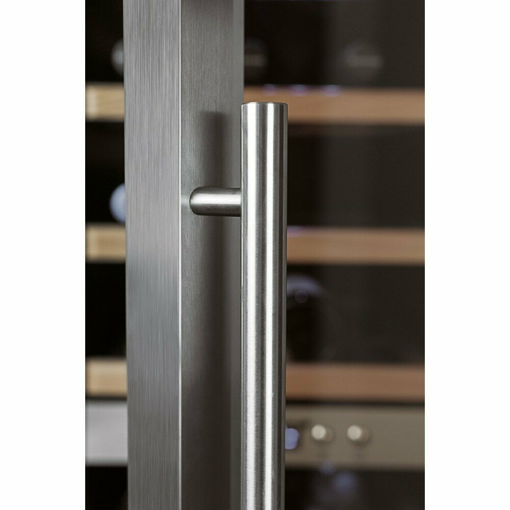 Винный шкаф CASO предназначен для охлаждения и длительного хранения бутилированного и разливного вина в частных домах, квартирах, отелях и офисах. Модель оснащена 2 зонами хранения с независимой установкой температуры и отдельной панелью управления c LED-дисплеем для каждой из них и 6 деревянными выдвижными полками. Дверная рама и ручка выполнены из нержавеющей стали, дверца - из стекла с ультрафиолетовым фильтром.