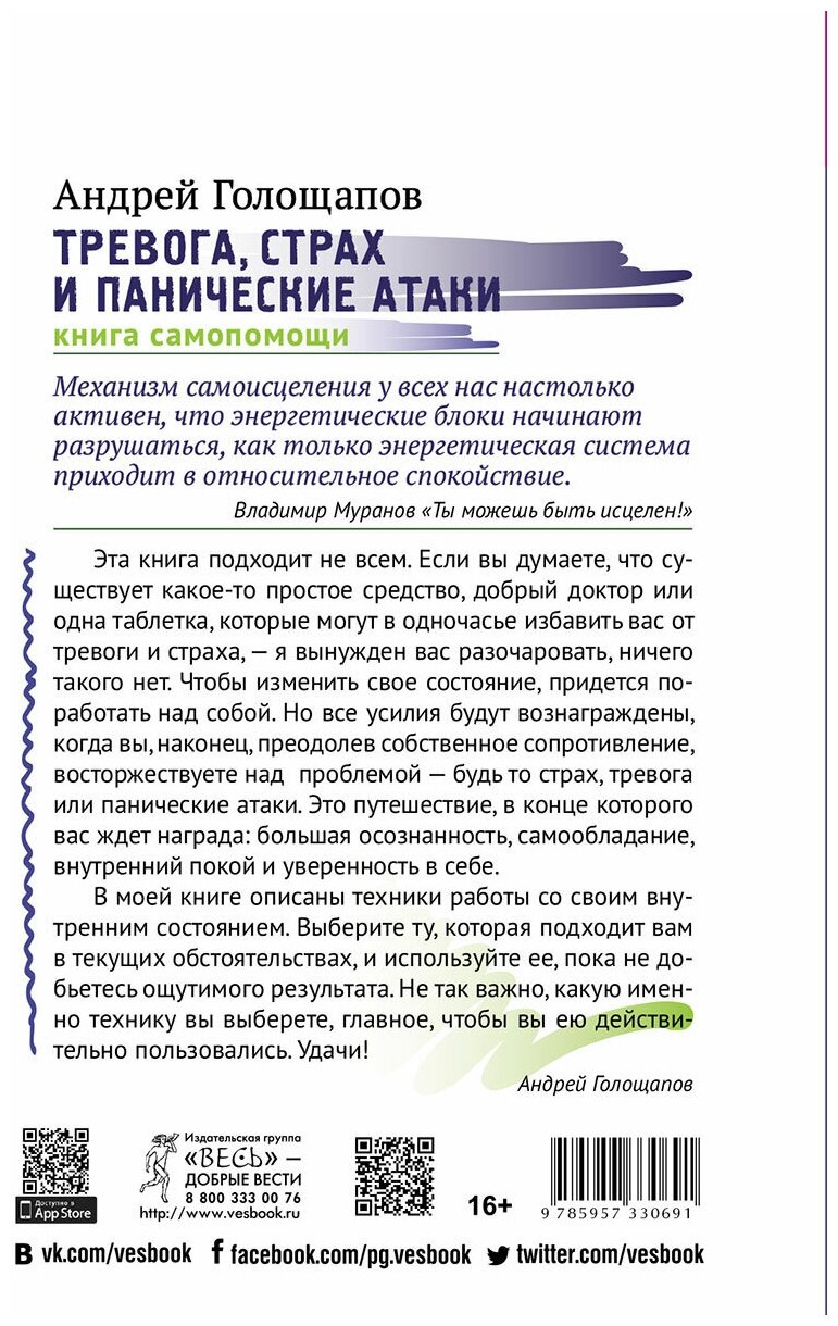 Тревога страх и панические атаки. Книга самопомощи (Андрей Викторович Голощапов); Весь СПб, 2022