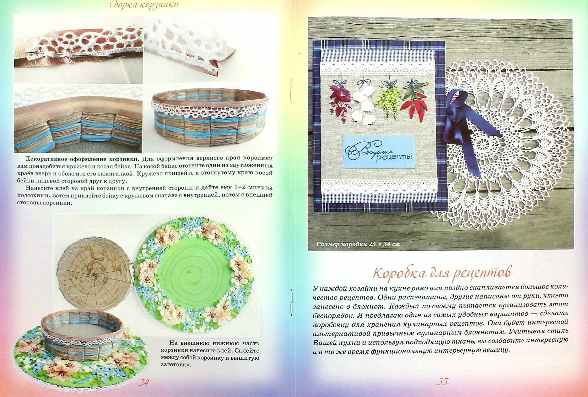 От внешнего вида ждала большего, в частности, заявлено, что бумага мелованная, но листы очень тонкие, хотя приятны на ощупь и дают чёткие отпечатки. Содержание достойное, расписано всё подробно, пошагово. Автор предлагает изготовить пять предметов: пасхальную игрушку – зайца, пасхальную корзинку для яиц, коробку для хранения рецептов, косметичку и ободок. Сказано, что книга рассчитана не только на начинающих вышивальщиц, и опытные найдут что-то новенькое для себя. Вышивка получается изумительная, особенно впечатлил чеснок на коробке для рецептов (по-моему, очень убедительный) и малинка на косметичке.
