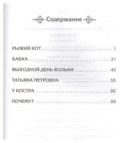 В сборник вошли произведения: Рыжий кот; Бавка; Выходной день Вольки; Татьяна Петровна; У костра; Почему?