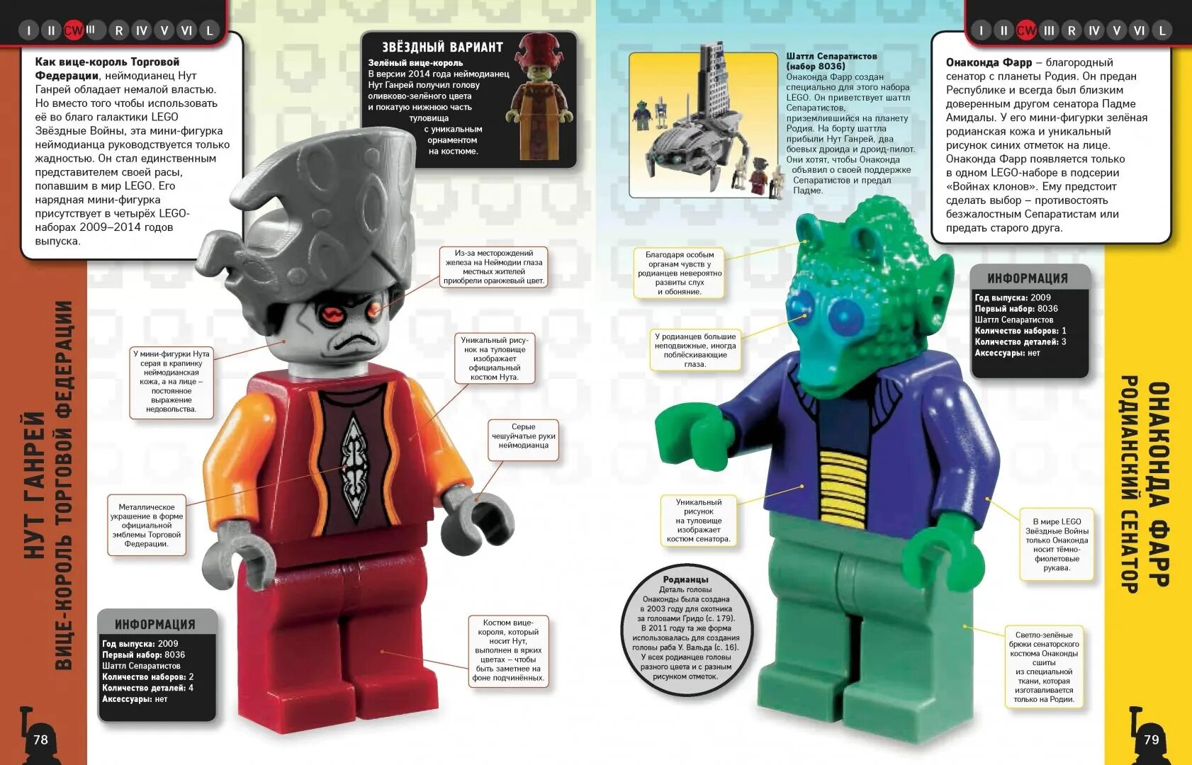В издании приводится информация по каждой фигурке - о годе выпуска, о наборах, где она присутствует, о прилагающихся к ней аксессуарах.