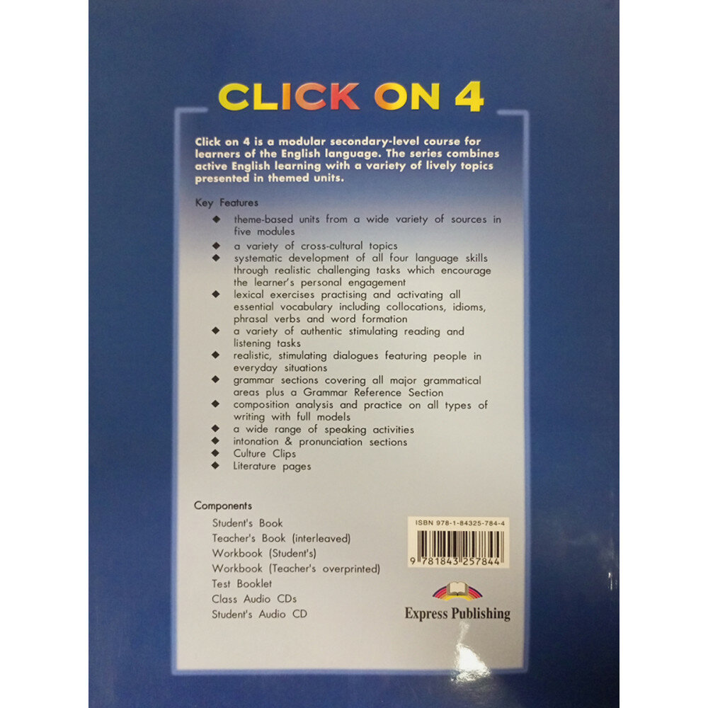 Click on 4 is a modular secondary-level course for learners of the English language. The series combines active English learning with a variety of lively topics presented in themed units.