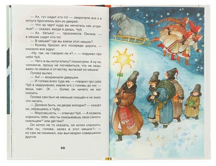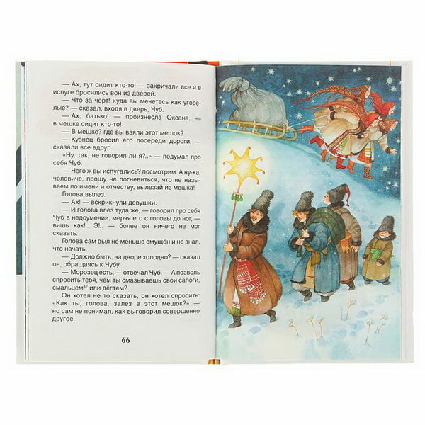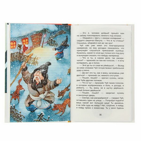 Повесть Н. В. Гоголя "Ночь перед Рождеством" из сборника "Вечера на хуторе близ Диканьки" отличает доброта, сказочность и мягкий юмор. И дети, и взрослые с интересом читают о том, как черт украл месяц, и о том, как кузнец Вакула летал к царице в Петербург за черевичками для своей возлюбленной Оксаны.