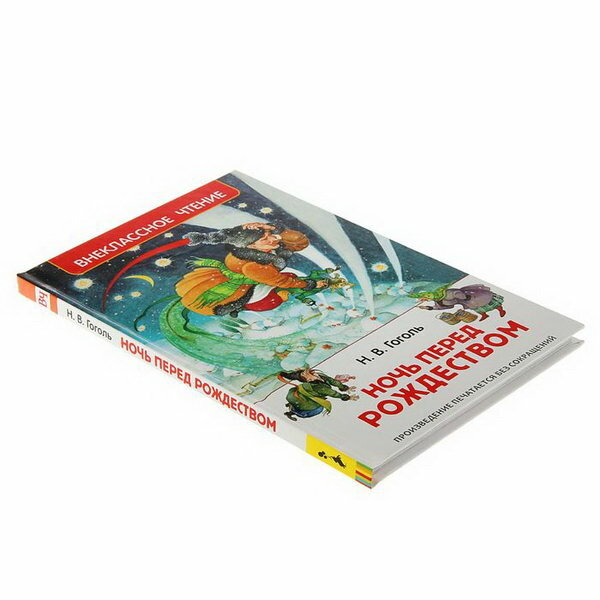 Приобрела данную книгу Ночь перед Рождеством автор Гоголь Николай Васильевич своему сыну третьекласснику. Книга среднего стандартного размера для этой серии, прекрасно красочно и ярко оформлена, очень хорошего качества, ее приятно держать в руках и не стыдно подарить. Плотные белые страницы, довольно крупный шрифт - ребенку самому комфортно читать ее, глаза не устают. Единственное, некоторые обороты слов устаревшие и не совсем понятные для современных детей, но есть словарь в конце книги. Книга наполнена очень красивыми цветными картинками в большом количестве. Произведение напечатано без сокращений.