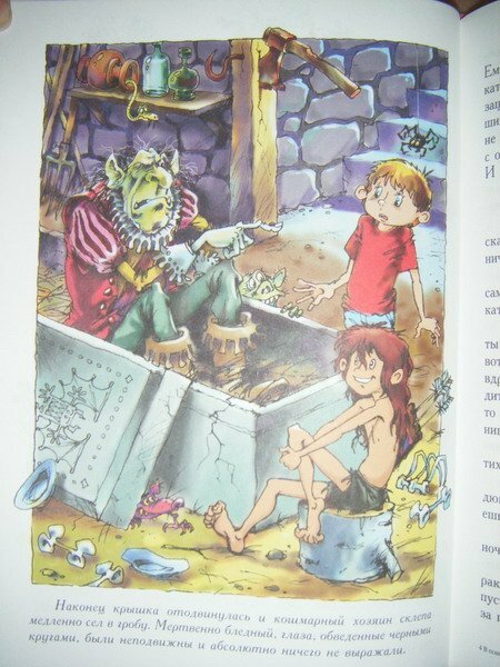 Читала эту книгу еще в младших классах школы. И вот увидела её в магазине и решина заказать для своего племянника. Книга красочная. Очень красивые и интересные иллюстрации. Из воспоминаний. На момент прочтения я даже представляла, где бы располагалась эта пожарная каланча, по которой лазил Филипп, у нас в городе. Читая эту книгу погружаешься в волшебный мир сказочных существ. Мне эта книга понравилась. Только как мне кажется раньше называлась немного иначе "Черный камень".