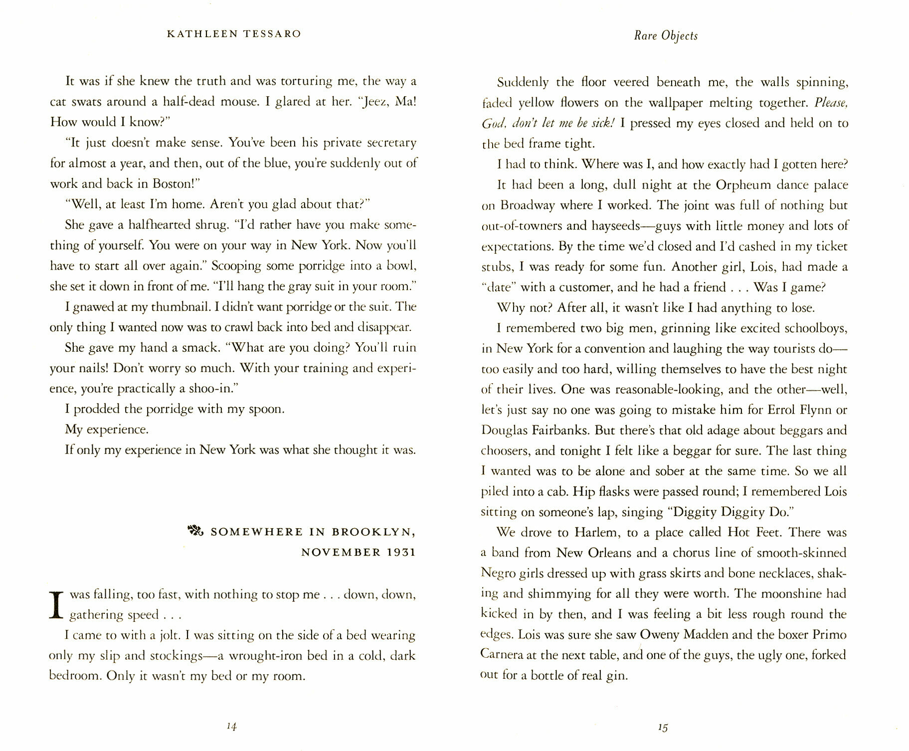 Moving from Jazz-Age New York to Boston in the grip of the Great Depression, Rare Objects is a rich and gripping story of what it means to reach for a braver, bolder life.