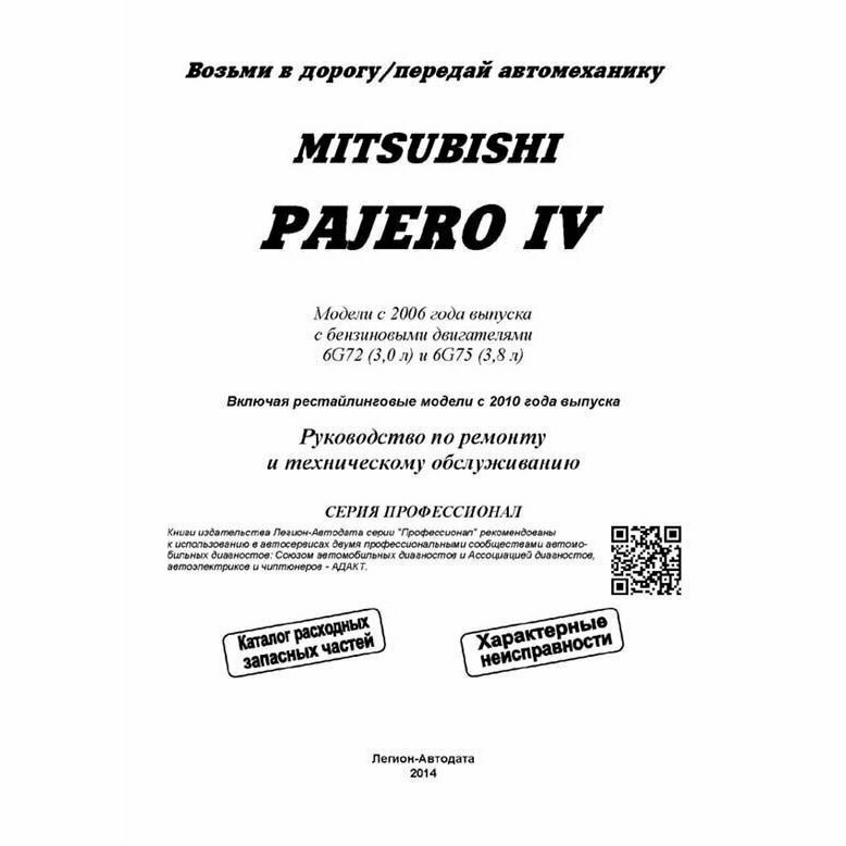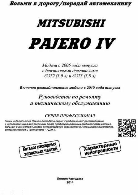Mitsubishi Pajero IV. Модели с 2006 года выпуска с бензиновыми двигателями 6G72 (30 л.) и 6G75 (38 л.). Включая рестайлинговые модели с 2010 года выпуска. Руководство по ремонту и техническому обслу (Коллектив авторов); Легион-Автодата, 2019