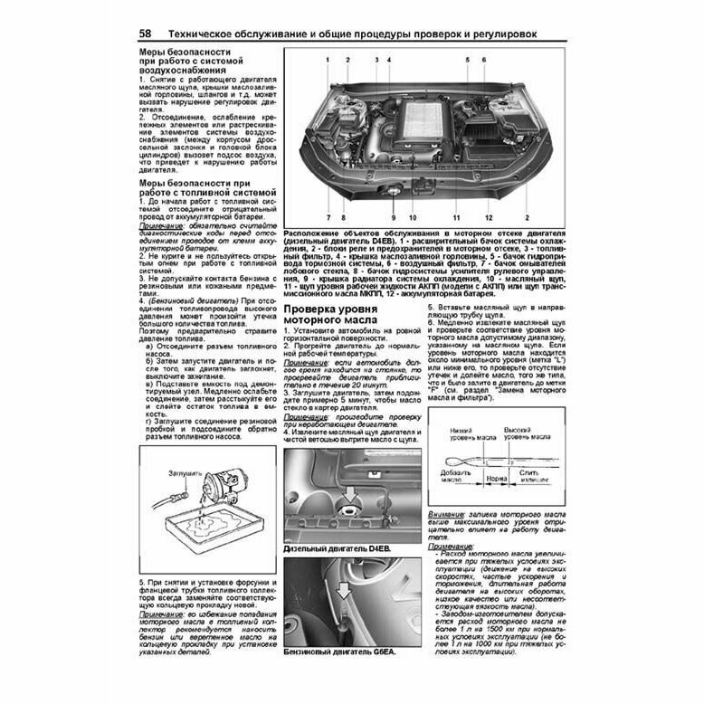 .Издание содержит руководство по эксплуатации, описание систем, подробные сведения по техническому обслуживанию автомобиля, диагностике, ремонту и регулировке элементов систем двигателя (в т.ч. топливной системы Common Rail, системы управления бензиновым и дизельным двигателями, систем турбонаддува, поддержания скорости, запуска и зарядки), элементов сцепления, механических (МКПП) и автоматических (АКПП) коробок передач, раздаточной коробки (включая систему управления полным приводом (4WD)), заднего редуктора, тормозной системы (включая антиблокировочную систему тормозов (ABS), систему курсовой устойчивости (ESP)), рулевого управления, подвески, кузовных элементов, системы кондиционирования и вентиляции (АС).
