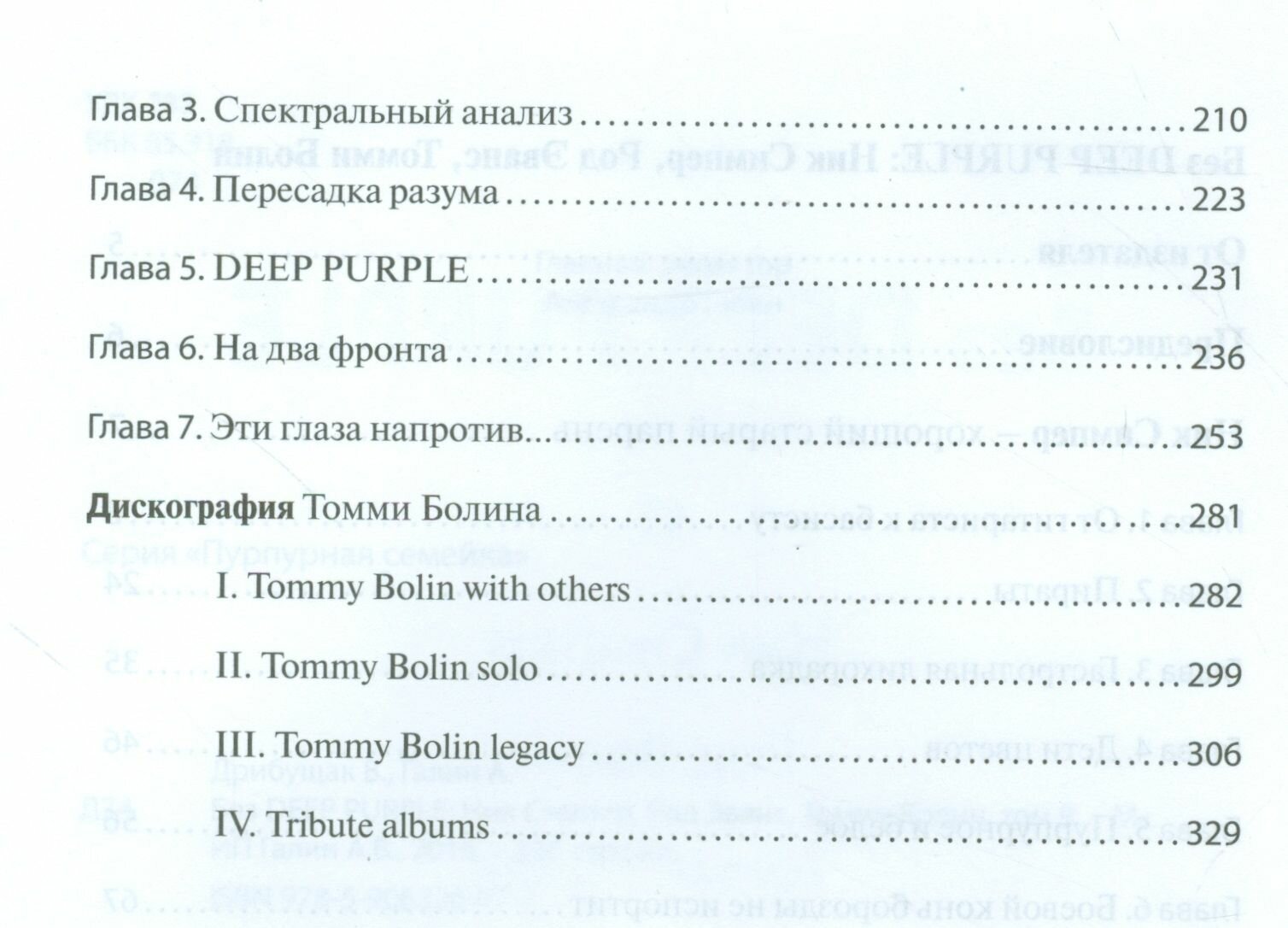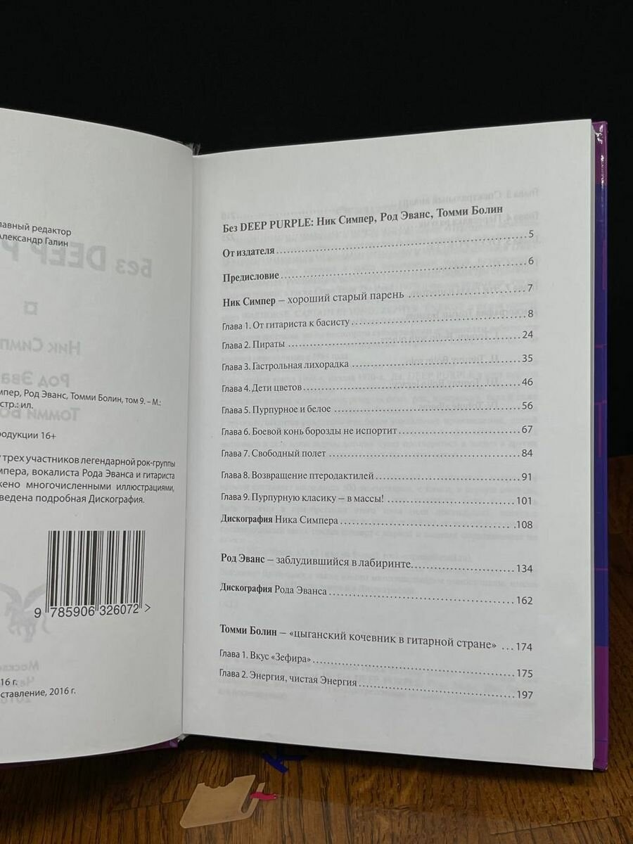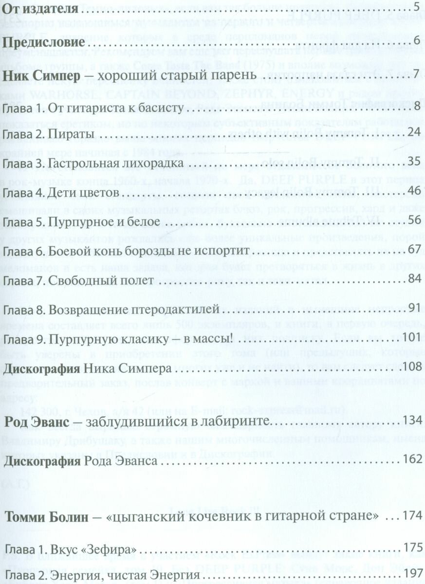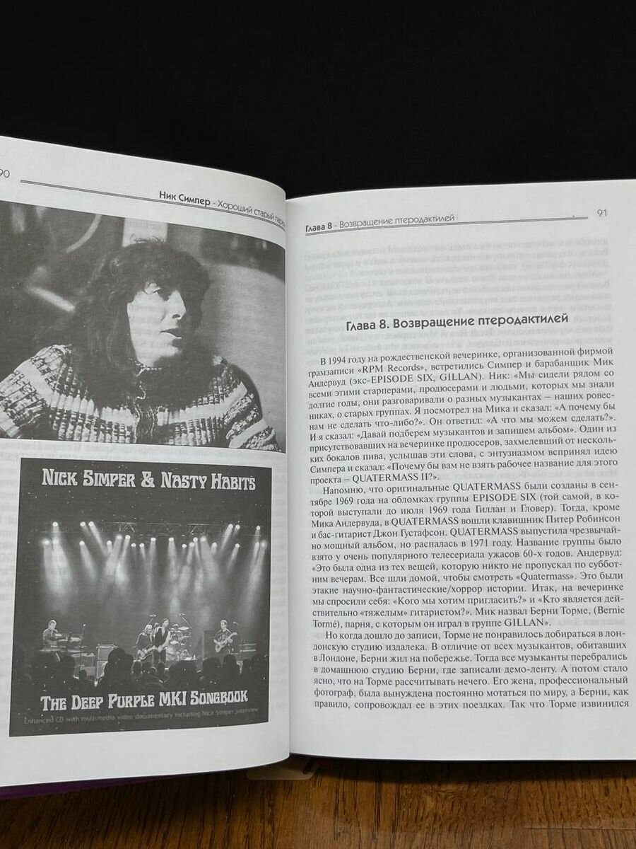 Без DEEP PURPLE Ник Симперс Род Эванс Томми Болин. Качество издания могло бы быть и лучше- есть фотографии, и даже не известные ( мне), но печать так себе. Зато в книге полная дискография, история создания некоторых песен и вообще история группы в разные периоды. Кратко, хотелось некоторые моменты подробнее, но интересно- у нас в стране не так уж и много материала по року.