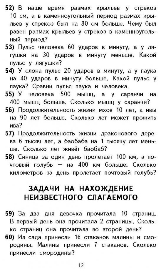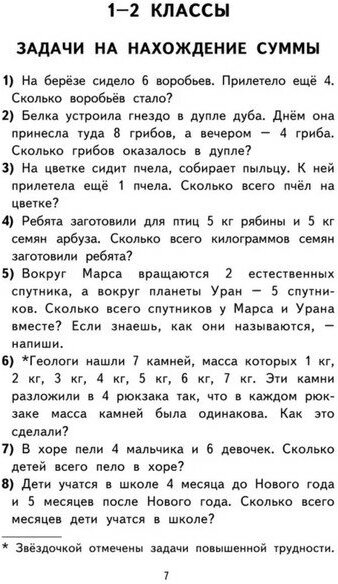 большое количество задач объединённых по темам с 1 по 4 класс. задачи и в стихах, и стандартные. очень помогли ребёнку для закрепления знаний по отдельным темам, потому что многие задачи одного типа, но сразными условиями. Формат издания удобен для того, чтобы взять с собой.