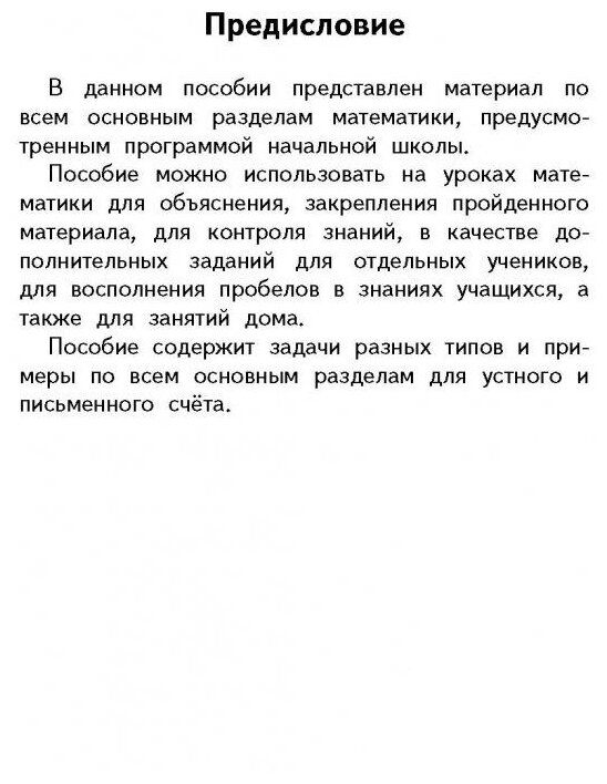 Замечательное пособие для учителя начальных классов. Настоящая палочка - выручалочка. Применяем каждый урок. Решаем задачки, и устно, и письменно. Примеры в несколько действий разбираем сначала , определяя порядок действий у доски, а сами действия выполняются затем самостоятельно. В конце пособия есть ответы, поэтому мне нет необходимости прорешивать каждое действие самой. Проверяя ответы , дети ставят плюсы себе, если есть совпадения. Если нет, то ищем ошибки, исправляем. Пособие можно использовать для коллективной и индивидуальной работы в классе и дома. Ребятам нравится решать примеры и задачи из данного пособия, поэтому записывают примеры в тетради для домашней работы. Советую приобрести.