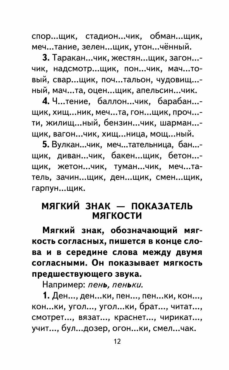 Данное пособие помогает отрабатывать навыки грамотного письма, если можно так выразиться набивать руку. Каждая тема состоит из короткого правила и большого количества примеров к этому правилу. Примеры – отдельные слова, не контекст, нужно вписать недостающие буквы, акцент на конкретное правило. Возможно, звучит не очень интересно, но подобные упражнения помогают довести правильное написание до автоматизма. Шрифт крупный, чёткое деление по темам, удобно распечатывать отдельные темы. Пособие рекомендую.