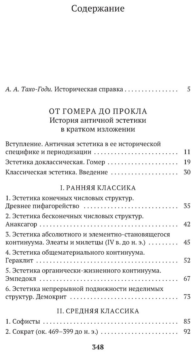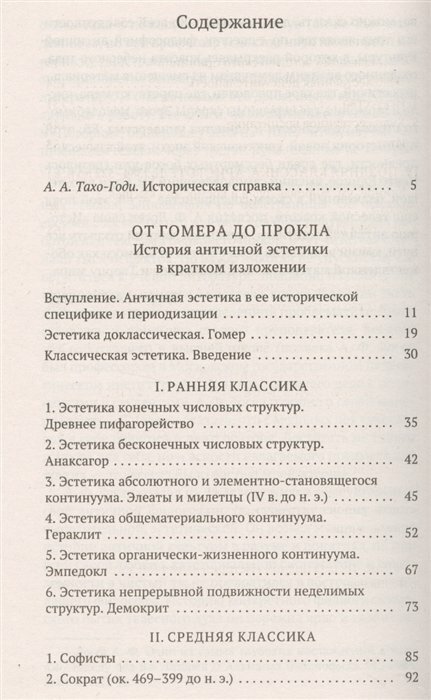 Небольшая, почти карманного формата, книга Алексея Федоровича Лосева вобрала в своем кратком содержании всю историю античной эстетики, начиная от древнейщих времен доклассической эстетики Гомера и заканчивая поздним периодом афинского неоплатонизма с ее ярким представителем Проклом. В начале книги приводится историческая справка проф. А.А. Тахо-Годи, в конце — его же замечательный очерк "О полной «Истории античной эстетики» А. Ф. Лосева". Книга выполнена на офсетной бумаге, обложка мягкая, глянцевая.