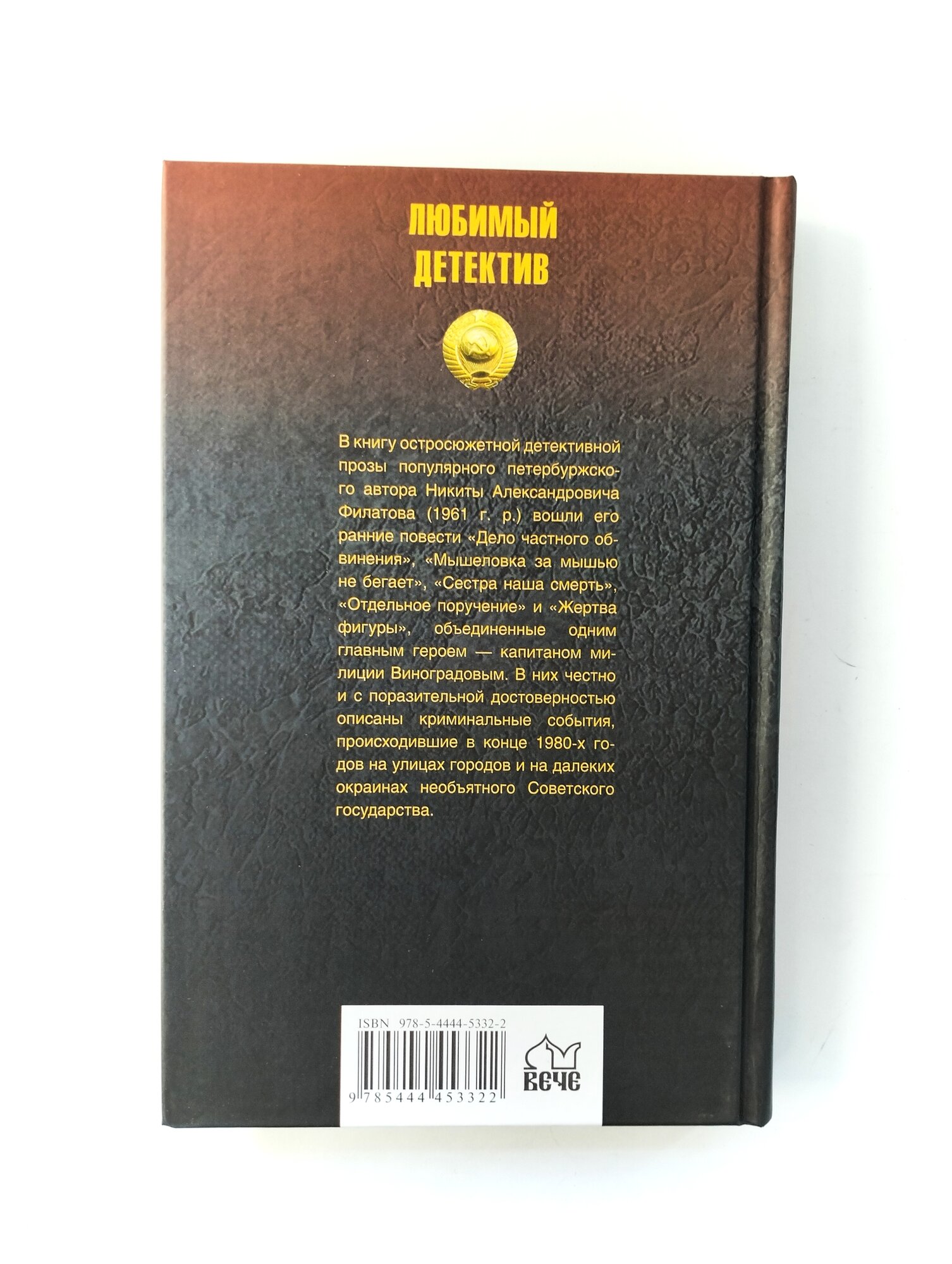 В книгу остросюжетной детективной прозы популярного петербуржского автора Никиты Александровича Филатова (1961 г. р.) вошли его ранние повести "Дело частного обвинения", "Мышеловка за мышью не бегает", "Сестра наша смерть", "Отдельное поручение" и "Жертва фигуры", объединенные одним главным героем - капитаном милиции Виноградовым. В них честно и с поразительной достоверностью описаны криминальные события, происходившие в конце 1980-х годов на улицах городов и на далеких окраинах необъятного Советского государства.