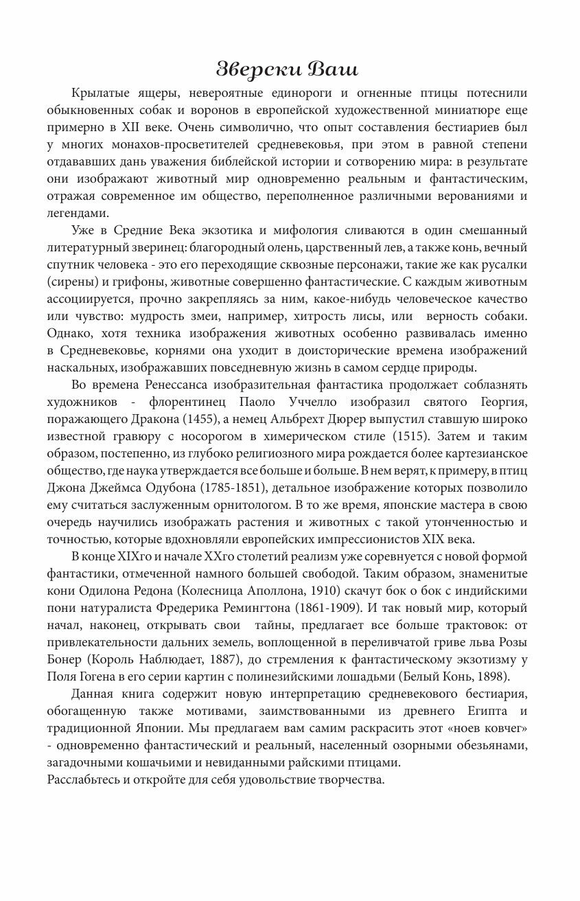 Используйте волшебные контуры этой книги для создания невероятных фантастических существ с помощью обычных цветных карандашей! Каждый контур - это эскиз к невероятному, красочному сценарию, который позволит раскрыть потенциал вашего воображения, лишь выберите цвет! В результате вы получите галерею авторских, эксклюзивных картин, творцом которых являетесь вы сами!