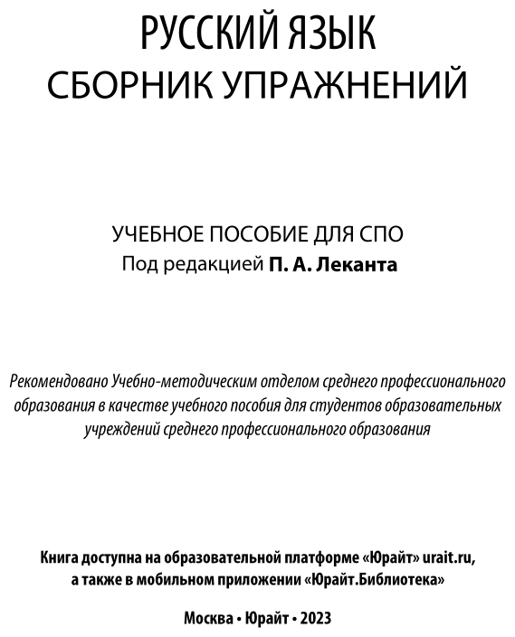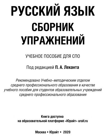 Русский язык. Сборник упражнений. Учебное пособие для СПО (Николай Борисович Самсонов); ЮРАЙТ, 2016
