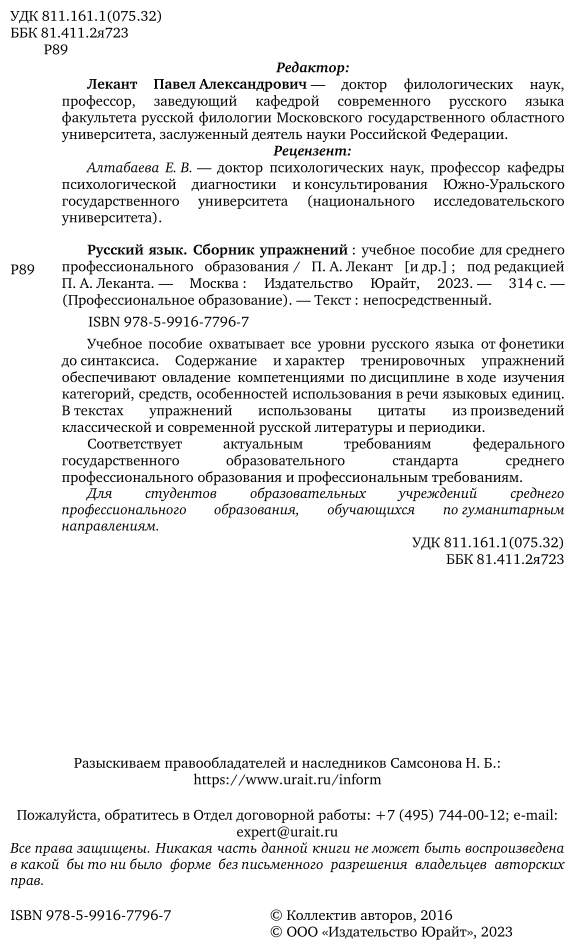 Издание предназначено изучающим русский язык в вузе: журналистам, учителям, филологам, копирайтерам, редакторам. Содержание и характер тренировочных упражнений обеспечивают овладение компетенциями по дисциплине в ходе изучения категорий, средств, особенностей использования в речи языковых единиц. Сборник составлен опытными преподавателями высочайшей квалификации - докторами и кандидатами наук, имеющими большой опыт работы и стремящимися поделиться своими знаниями.
