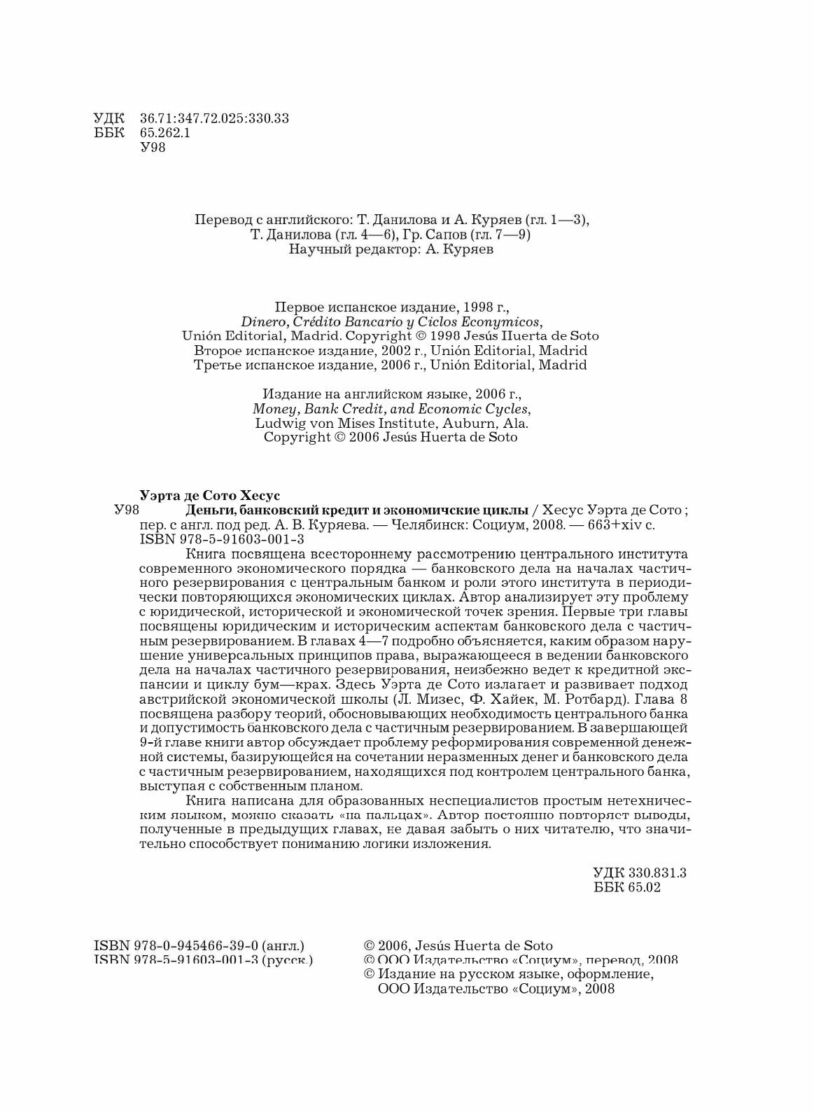 Деньги банковский кредит и экономические циклы (Хесус Уэрта де Сото Бальестер); Социум, 2008