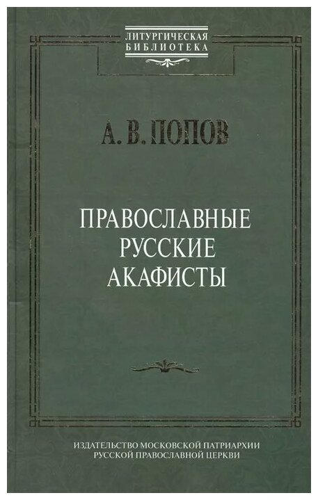 В серии «Литургическая библиотека» вниманию читателей предлагается переиздание фундаментального труда профессора теории словесности и истории иностранной литературы Казанской духовной академии А. В. Попова, посвященного истории происхождения и цензуры, особенностям содержания и построения русских акафистов. Научная значимость этого труда очевидна и по сей день. Книга будет, несомненно, интересна исследователям, занимающимся изучением развития православного богослужения, учащимся духовных школ, а также всем православным христианам. Содержание:От редакции – 3Священник Феодор Людоговский. Профессор Казанской духовной академии А. В. Попов и его «Православные русские акафисты» – 3От автора – 5_______введение – 7_______историко-библиографический обзор акафистов: переводных И оригинальных, рукописных И печатных, существовавших В россии до учреждения святейшего синода – 331. Акафист Пресвятой Владычице нашей Богородице и Приснодеве Марии – 332. Акафист Сладчайшему Господу нашему Иисусу Христу – 383. Акафист Успению Пресвятой Владычицы нашей Богородицы и Приснодевы Марии – 404. Акафист св. Николаю Чудотворцу – 435. Акафист св. Иоанну, Предтече и Крестителю Господню – 546. Акафист св. Архистратигу Михаилу и Бесплотным Силам – 587. Акафист Живоносному Гробу Господню – 598. Акафист Страстям Христовым – 609. Акафист Честному и Животворящему Кресту Господню – 6110. Акафист свв. апостолам Петру и Павлу, вкупе же и всем святым апостолам – 6211. Акафист всем святым – 6412. Акафист Пресвятой Троице – 6513. Акафист св. Иоанну Златоусту – 6514. Акафист свтт. Петру, Алексию и Ионе – 6615. Акафист св. великомученице Варваре – 6716. Акафист прп. Сергию, игумену Радонежскому, чудотворцу – 7017. Акафист прп. Алексию, человеку Божию – 72_______историко-библиографический обзор православных акафистов, разрешенных духовной цензурой К церковному употреблению, за синодальный период – 751. Акафисты Пресвятой Богородице, Сладчайшему Господу нашему Иисусу Христу, Успению Пресвятой Богородицы, святителю Христову Николаю – 752. Акафист св. великомученице Варваре – 873. Акафисты (первый и второй) прп. Сергию игумену, Радонежскому чудотворцу – 914. Акафисты свт. Димитрию Ростовскому (два), св. апостолу и евангелисту Иоанну Богослову (два) – 955. Акафист св. Стефану, епископу Пермскому – 1106. Акафист прп. Никандру, Псковскому чудотворцу – 1167. Акафист св. великомученице Екатерине – 1188. Акафист св. Алексию, митрополиту [Московскому], всея России чудотворцу – 1219. Акафисты св. великомученику Георгию, св. Савве, Вишерскому чудотворцу – 12210. Акафист свт. Митрофану, первому епископу Воронежскому – 12511. Акафист св. благоверному великому князю Александру Невскому – 12912. Акафист св. Архангелу Михаилу –.