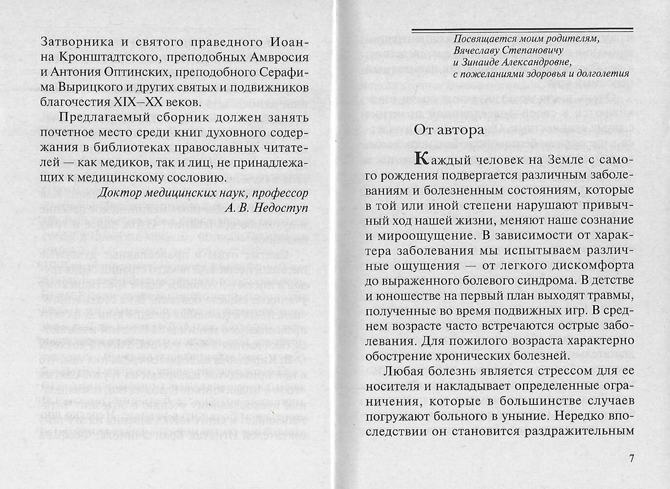 Почему человек болеет? Почему болезнь связана с грехом? Всегда ли это бывает? Как следует вести себя в болезни православному человеку? Как помогает Церковь преодолевать болезни? Автор книги, сам практикующий врач, предлагает искать ответы на эти и на многие другие вопросы в наследии святых отцов и подвижников благочестия XIX и XX веков. Святые отцы старались утешить страждущих телесными недугами таким образом, чтобы они понимали прежде всего духовные причины болезни. Когда приходит понимание того, что физические проявления болезни вторичны, а первоосновой являются изменения на духовном уровне, тогда больной задумывается о выборе своего духовного пути.
