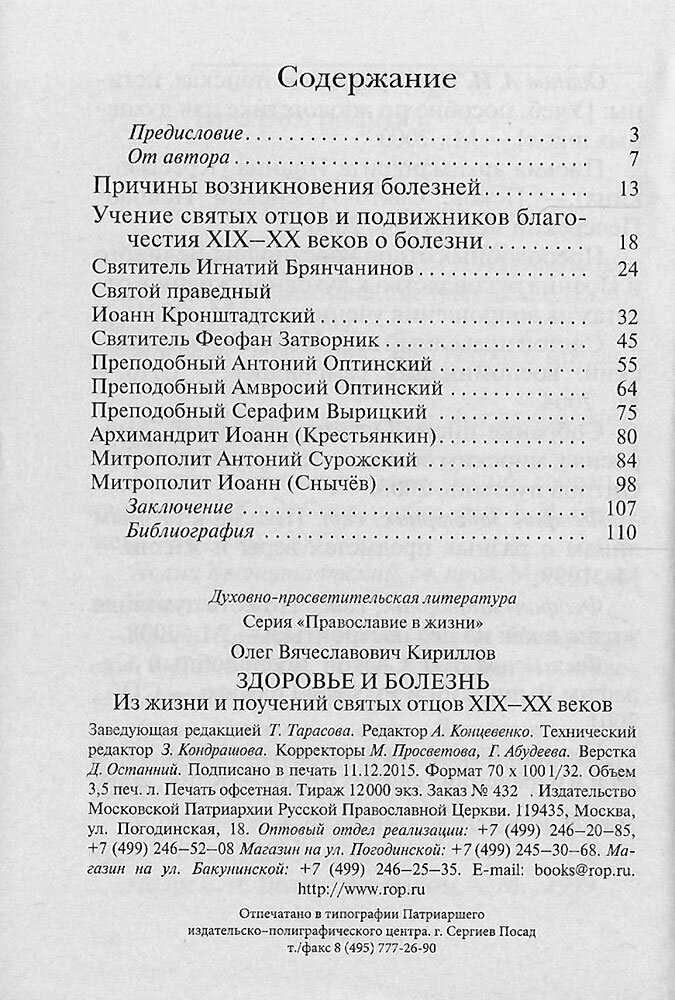 Здоровье и болезнь. Из жизни и поучений святых отцов XIX-XX веков (Кириллов Олег Вячеславович); Изд-во Московской Патриархии, 2016