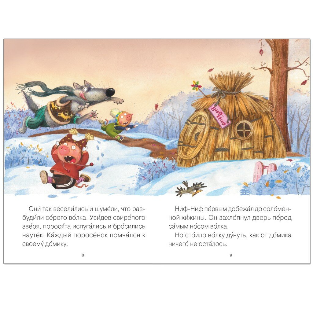 Для первого самостоятельного чтения идеально подходит красочная книга Три поросенка серии Читаю сам. Чтение любимой сказки обязательно увлечет ребенка. Ему будет легко воспринять текст, благодаря крупному шрифту и расставленным в словах ударениям, а великолепные иллюстрации помогут удержать его интерес, ребенок с удовольствием дочитает сказку до конца.