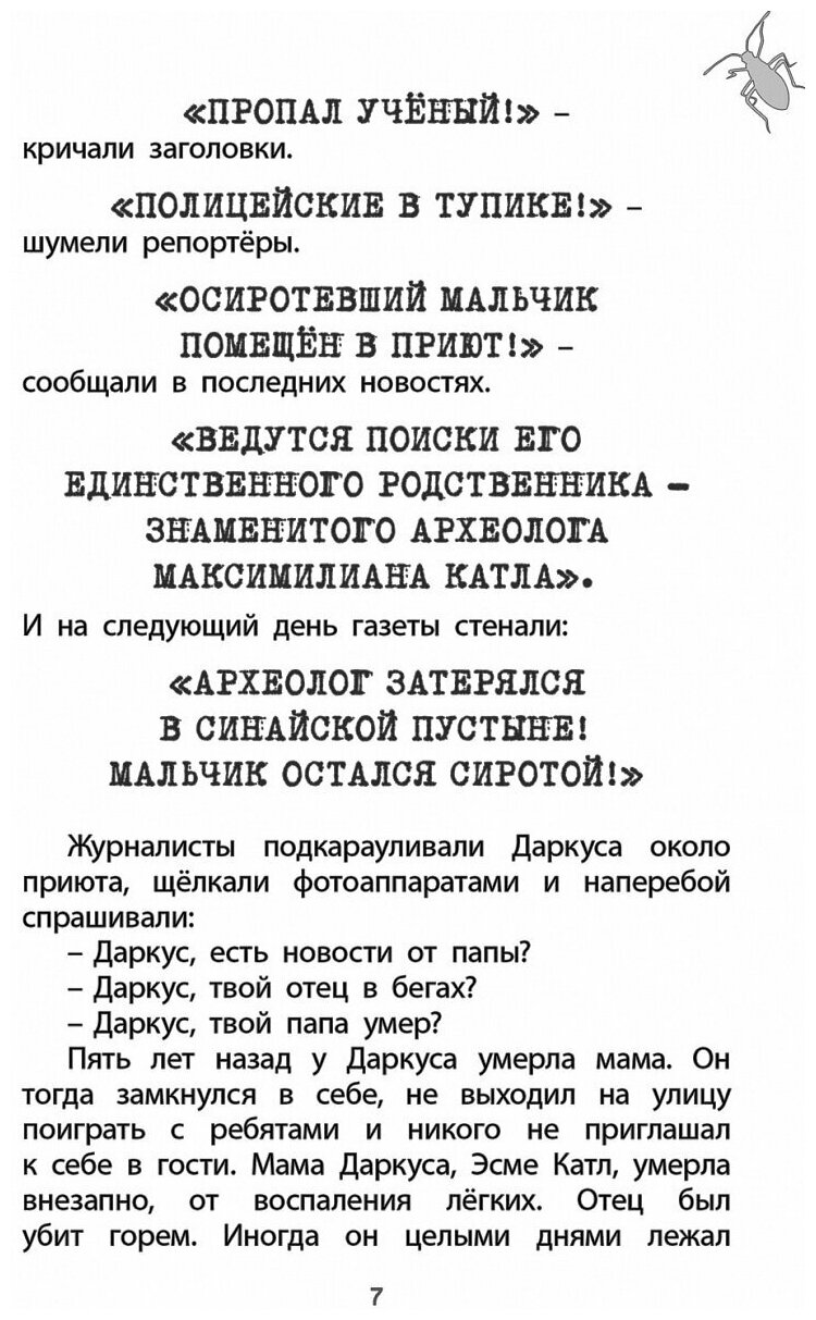 Книга увлекательная. Вот бы по ней фильм поставить! Прямо – готовый сценарий. Тут тебе - и похищение, и заброшенный лагерь-склад, и умные жуки, и мрачный особняк , и очень много насекомых. Они повсюду.
