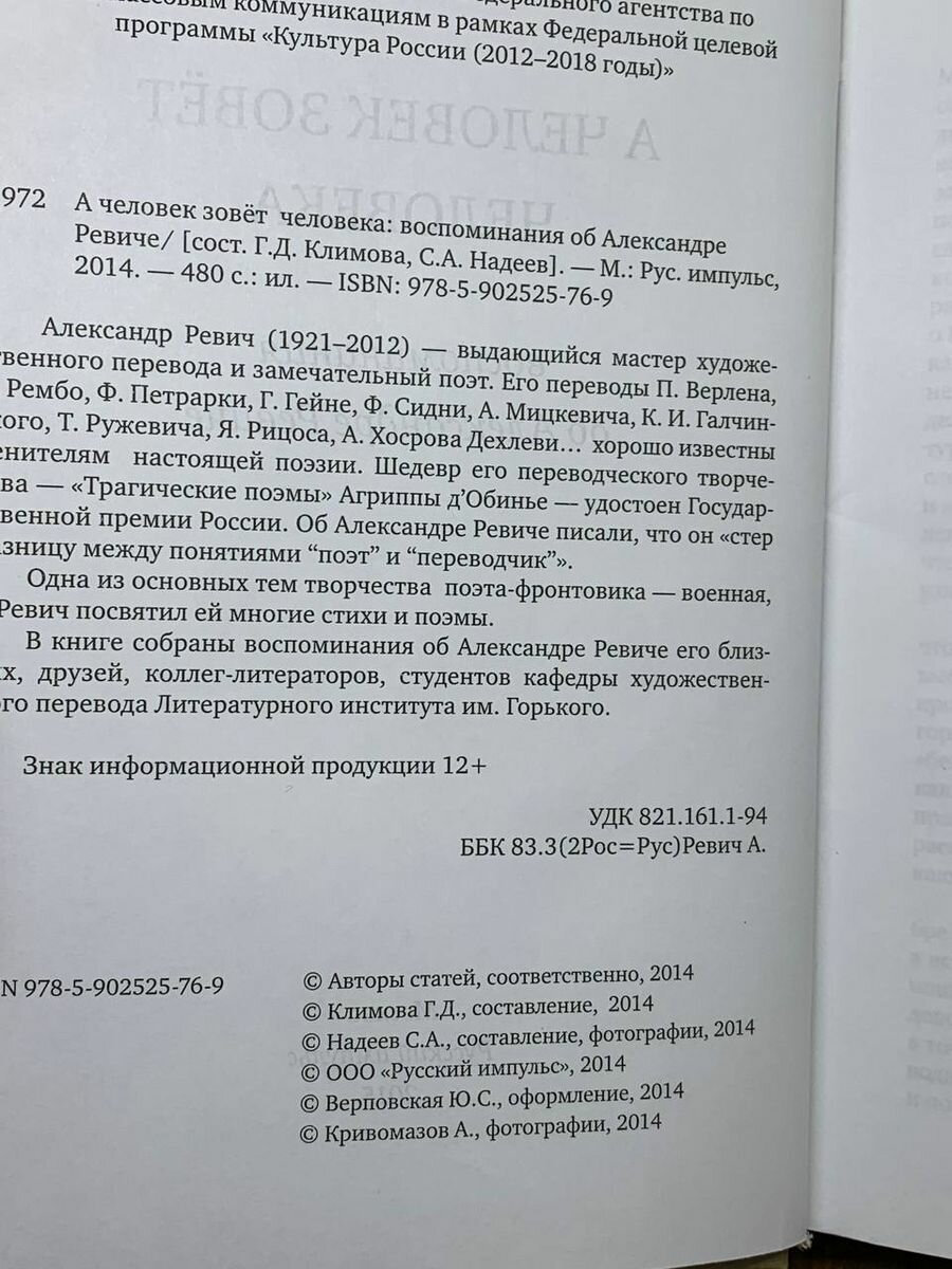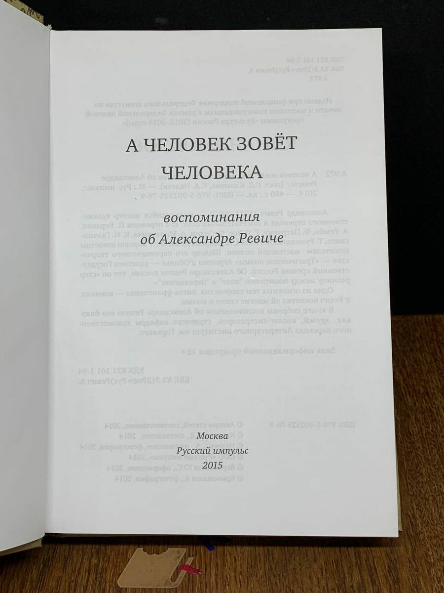 А человек зовет человека. Воспоминания об Александре Ревиче (Климова Г., Надеев С. (сост.)); Русский импульс, 2015