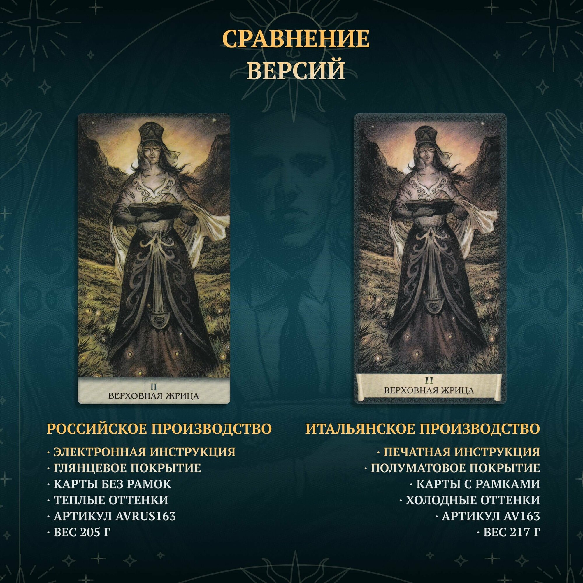 Таро «Некрономикон» вдохновлено тёмными ритуалами и древними книгами. С помощью этих карт вы заглянете в прошлое, настоящее или будущее.