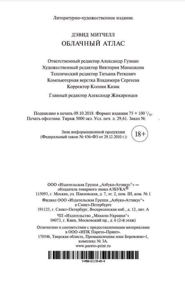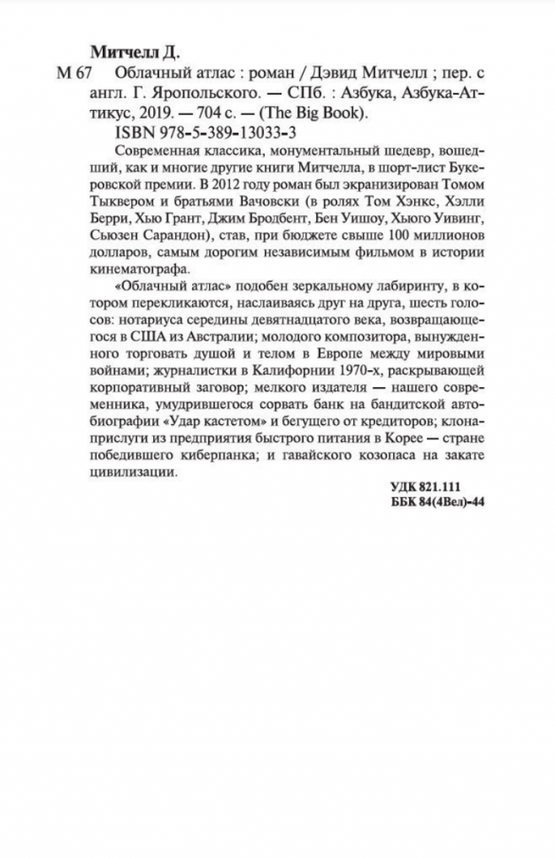 Книга: Облачный атлас (Митчелл Дэвид Стивен); Иностранка, 2016