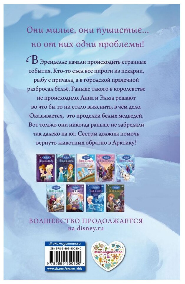 Они милые, они пушистые. но от них одни проблемы!В Эренделле начали происходить странные события. Кто-то съел все пироги из пекарни, рыбу с причала, а в городской прачечной разбросал бельё. Раньше такого в королевстве не происходило. Анна и Эльза решают во что бы то ни стало выяснить, в чём дело. Оказывается, это проделки белых медведей. Вот только они никогда раньше не забредали так далеко на юг. Сестры должны помочь вернуть животных обратно в Арктику!