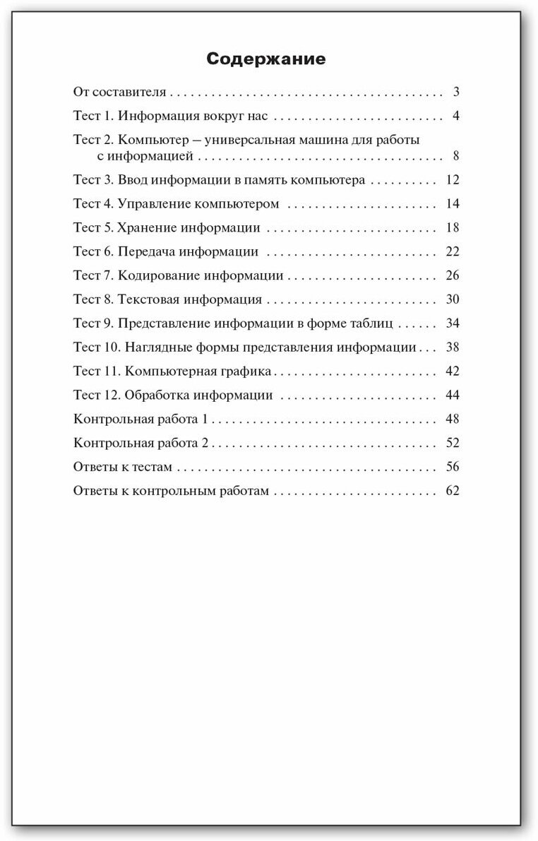 В пособии представлены контрольно-измерительные материалы (КИМы) по информатике для 5 класса. Издание составлено в соответствии с требованиями ФГОС. Структура КИМов аналогична структуре заданий ЕГЭ, что позволит постепенно подготовить учащихся к работе с подобным материалом. В конце издания предложены ответы к тестам.