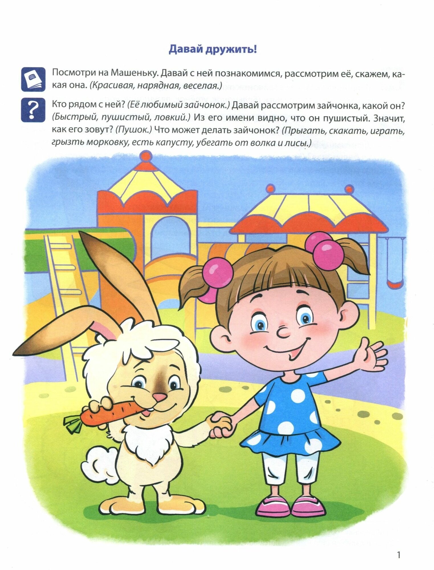 Первая книга цикла "В мире слов" направлена на формирование конкретных речевых навыков у ребенка: закрепление правильного произношения некоторых звуков русского языка, употребление глаголов и прилагательных и многое другое. Пособие расширяет лексику ребенка по темам: посуда, музыкальные инструменты, животные и их детеныши. Все задания связаны единой сюжетной линией, вплетены в рассказ о девочке Маше. Тетрадь связана с программой О.С.Ушаковой "Развитие речи дошкольников", но может быть использована и самостоятельно.