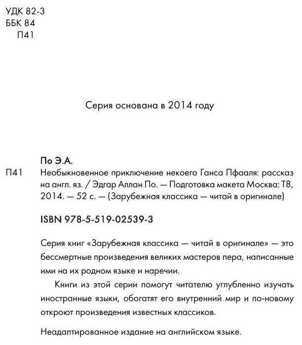 The Unparalleled Adventure of One Hans Pfaall (По Эдгар Аллан); Книга по Требованию, 2014